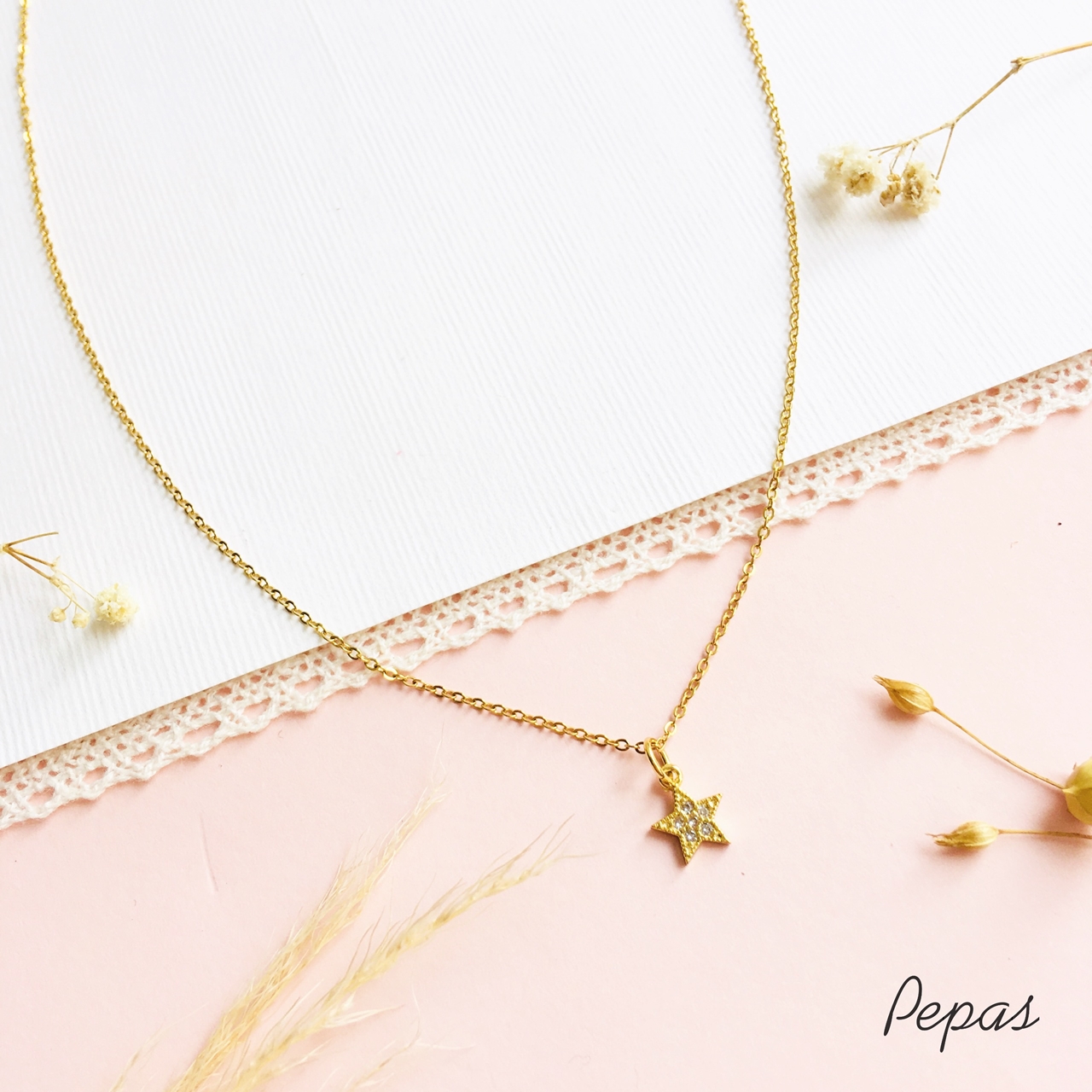 Dije: Estrella de cobre enchapado en oro con circones