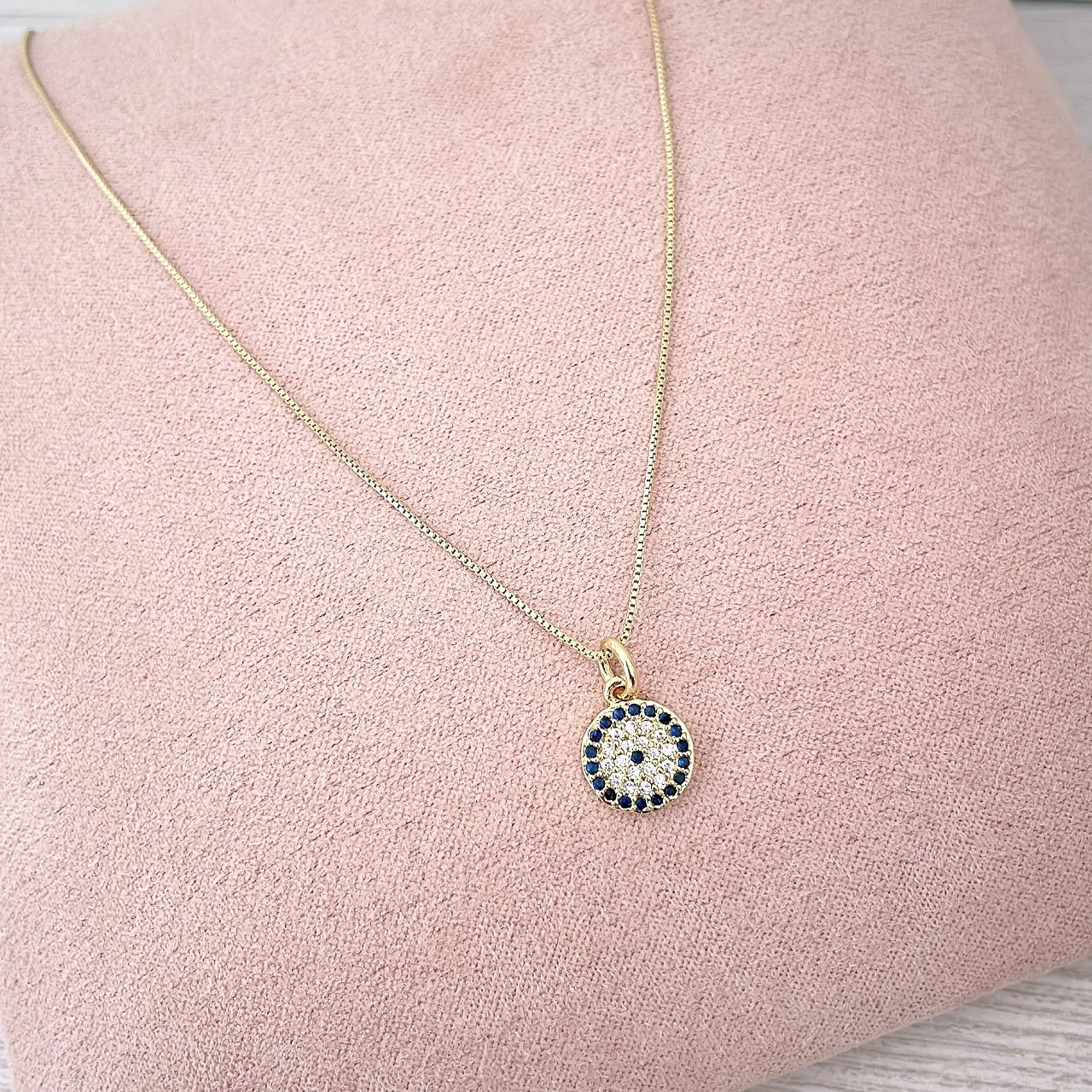Dije: Ojo Turco Azul de cobre enchapado en oro con circones