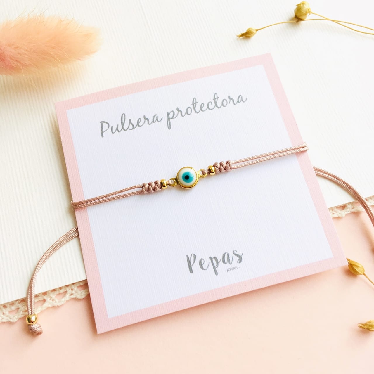 Dije: Ojo Turco blanco con borde de acero inoxidable