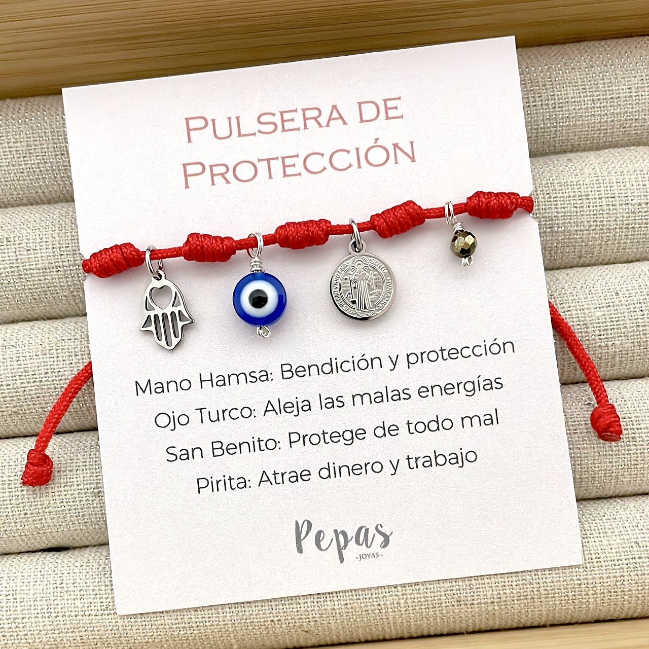 Sé el primero en valorar “Pulsera de Hilo de 7 Nudos con Dijes de Protección”