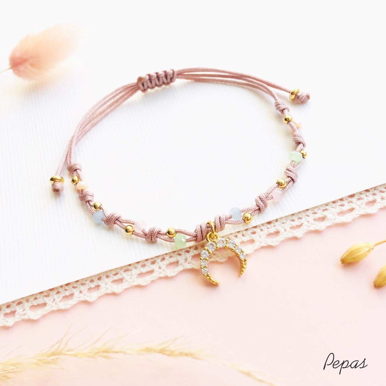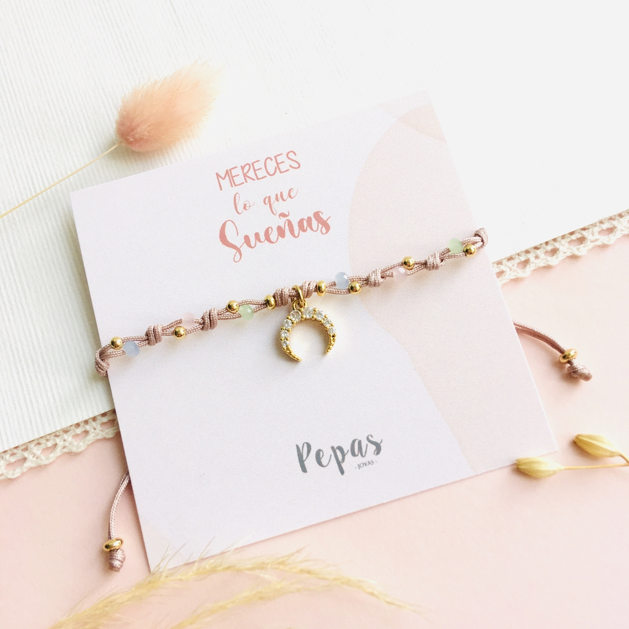 Dije: Luna Invertida de cobre enchapado en oro con circones