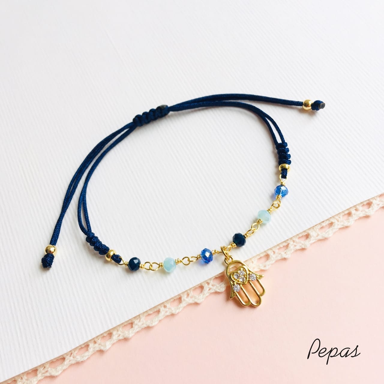 Sé el primero en valorar “Pulsera de Muranos con Dije de Mano Hamsa”