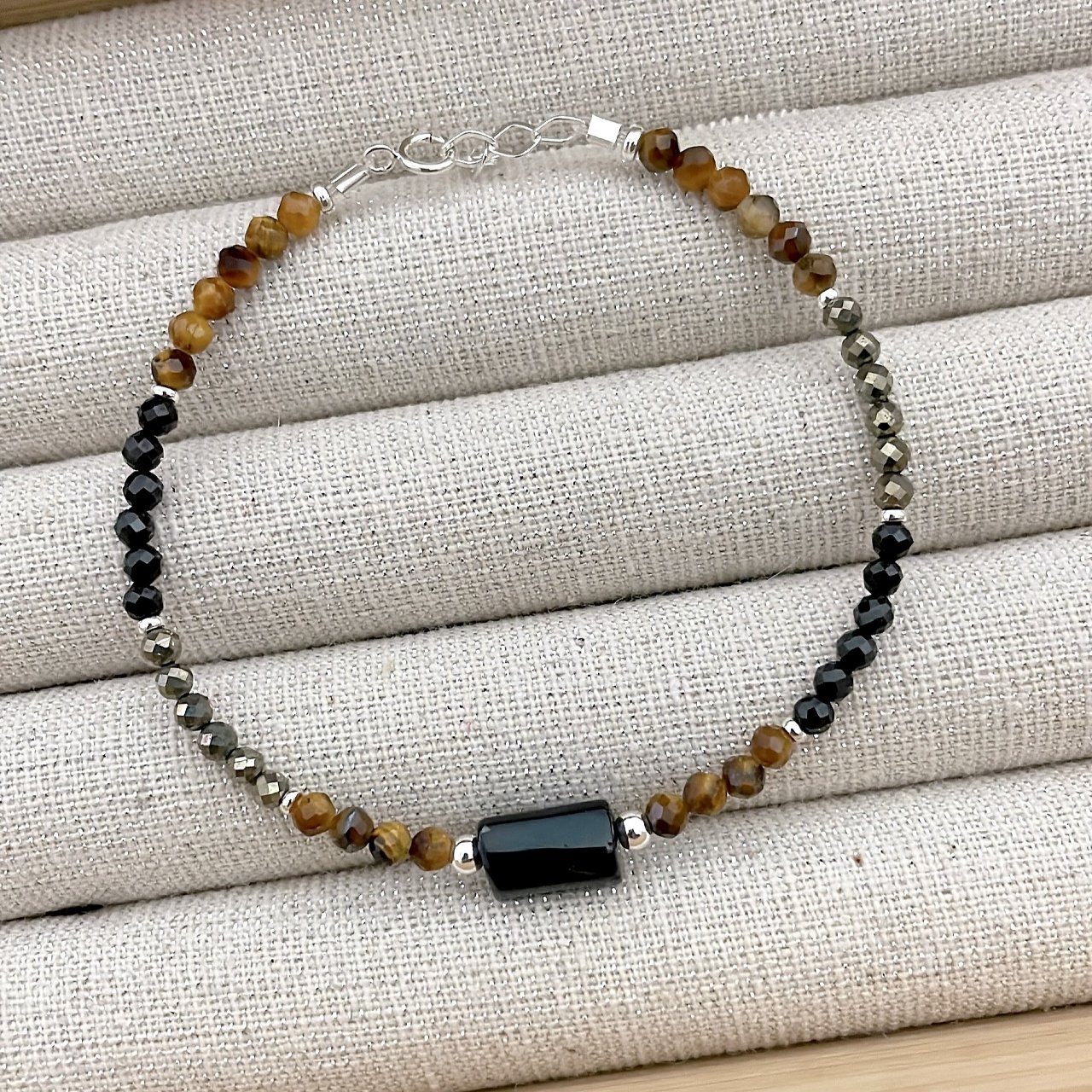 Material: Piedras Naturales – Ojo de Tigre, Ónix, Pirita y Turmalina